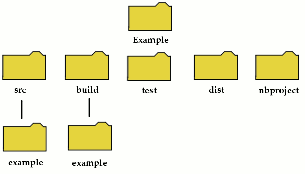 - build - This is where class files will be stored once compiled. Again the folders underneath this will represnet packages.
