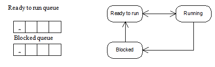 When a process is waiting for a device to complete we say that this is a I/O bound process. A process should not wait for an I/O operation to complete, but should relinquish control to another process.When a process requests access to a I/O device it is said to go into the blocked state. Consider the diagram below.