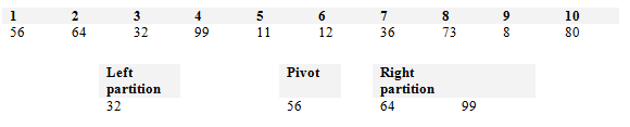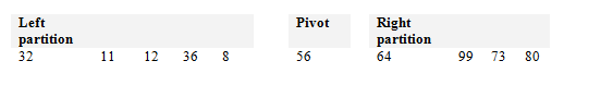 We now know that everything in the left partition is smaller than the pivot and everything to the right is bigger. The pivot is also said to be sorted.