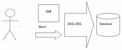 Some of you may of only ever seen graphical front ends to databases. However these are not how we communicate with the data base. We use a special language to communicate with the database. What the front ends do is use the language to communicate with the database. The diagram shows this below.